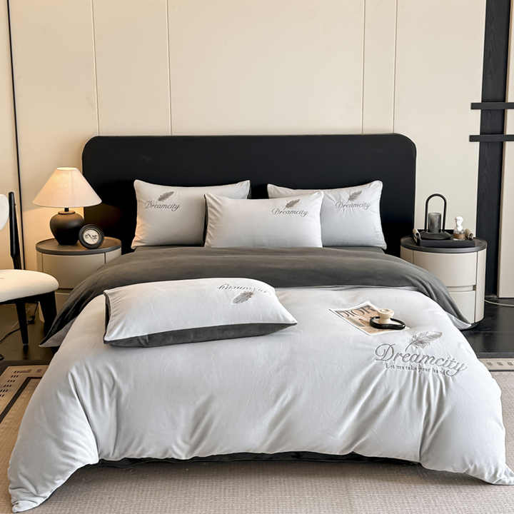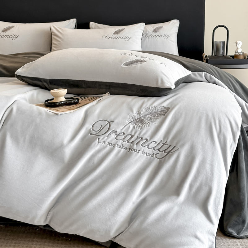 Juego de Ropa de Cama Personalizado de 4 Piezas con Bordado de Terciopelo Cristalino, Funda de Edredón de Franela y Sábanas de Terciopelo Coral