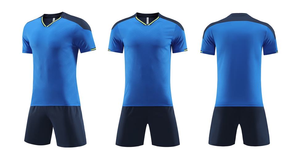 Sublimación personalizada Impresión digital 100% Poliéster Verano Fútbol Jersey Kit Transpirable Secado rápido Cuello en V Manga corta