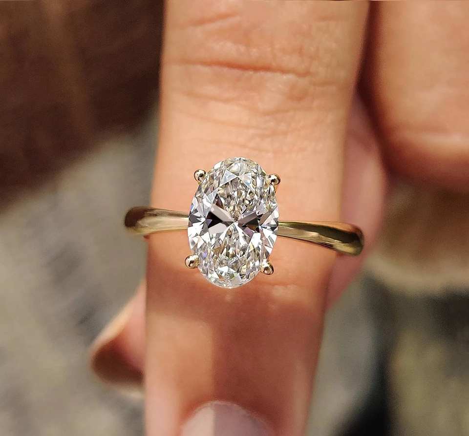 Anillo de Compromiso Personalizable con Diamante Cultivado en Laboratorio de Corte Ovalado de 1 Quilate, Oro Sólido de 10k, 14k, 18k, Color EF, Claridad VVS, Sin Níquel, Sin Plomo
