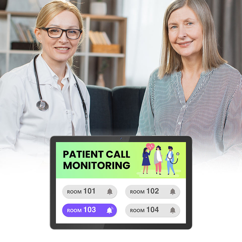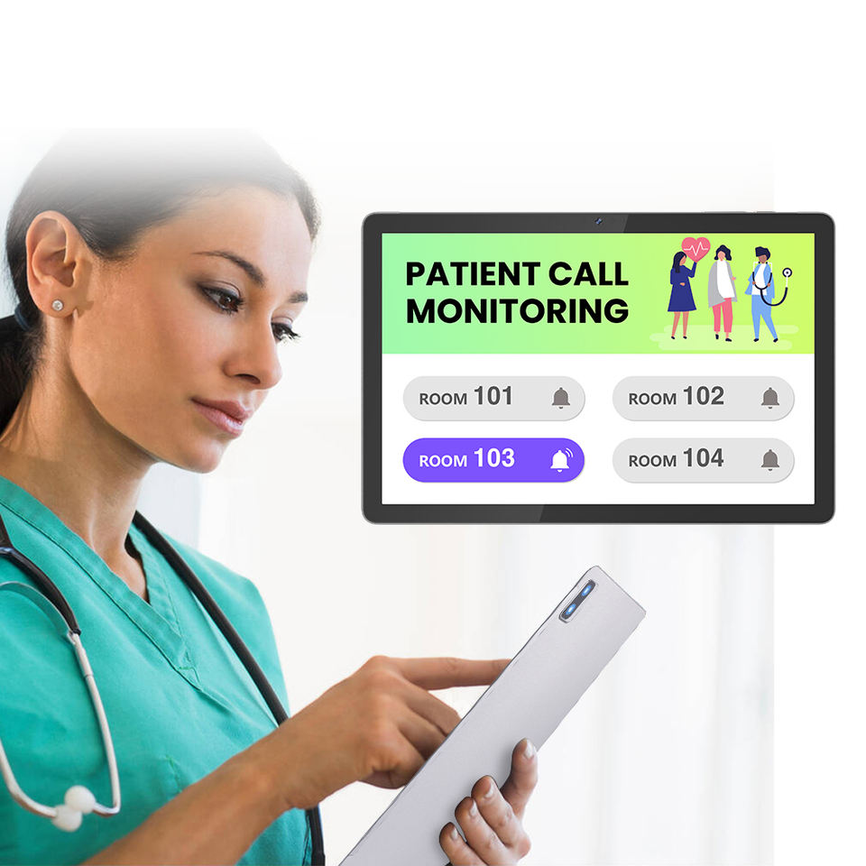 Tableta personalizable de 10 pulgadas para el cuidado de personas mayores, con pantalla grande, compatible con bluetooth, transferencia de datos reales