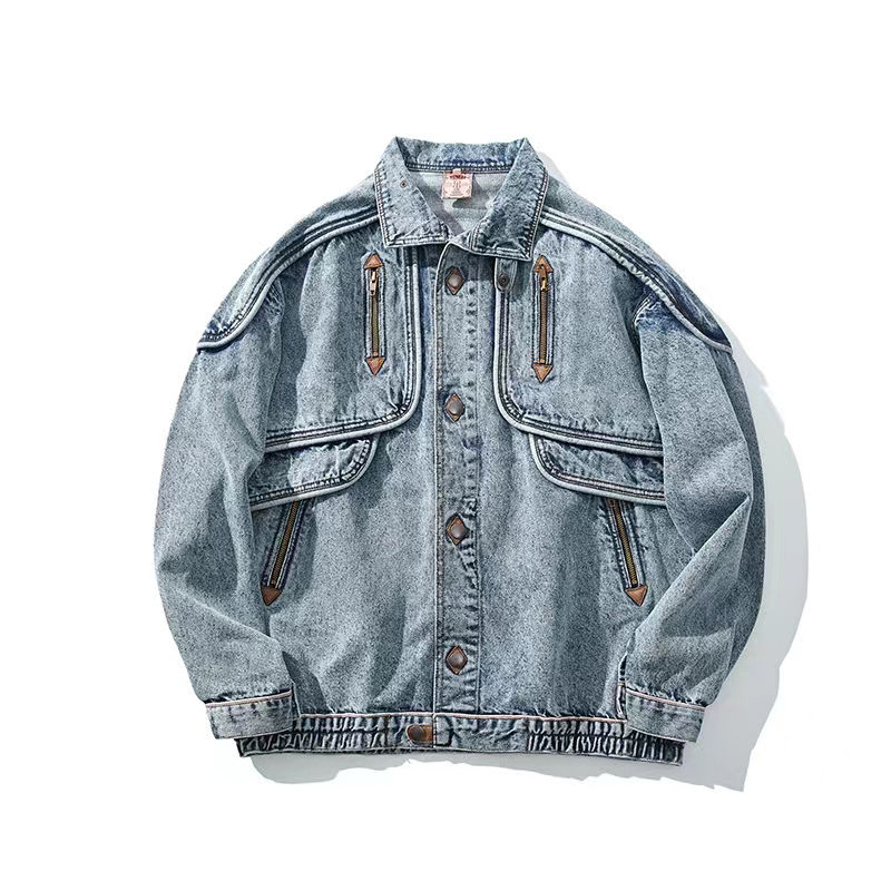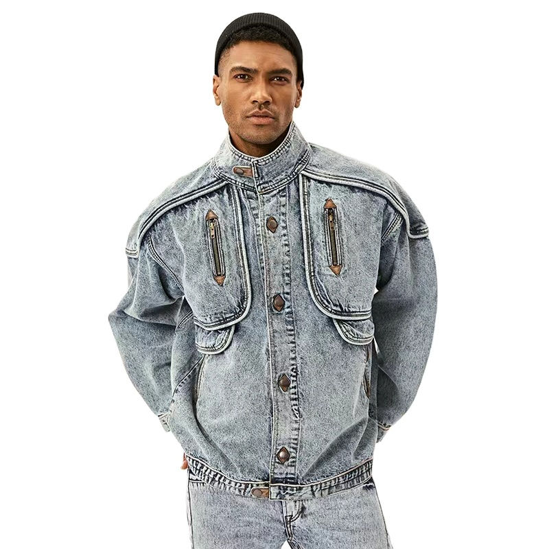 Chaqueta vaquera lavada vintage de algodón 100% personalizable para hombre Y2K High Street Bomber Button-Down Feature Plus Size Autumn Season XL