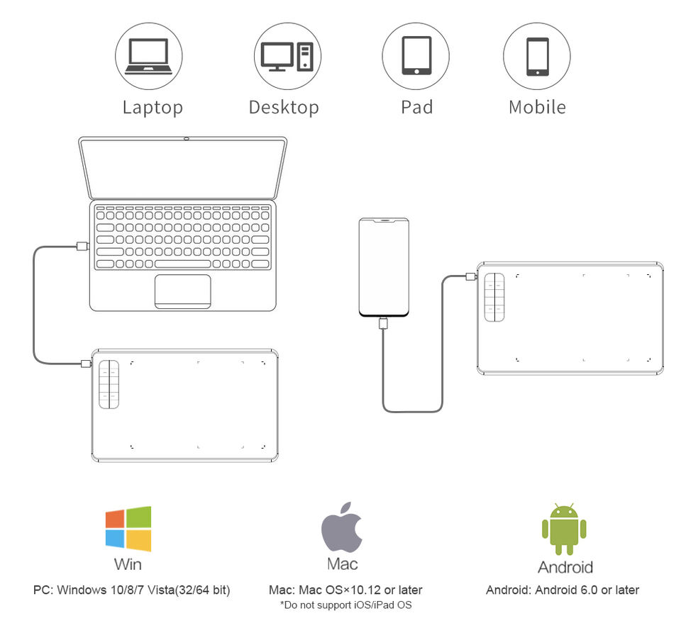 Interfaz USB 2.0: La interfaz USB 2.0 garantiza una conexión confiable y rápida con su computadora, facilitando la configuración y el uso del tableta.