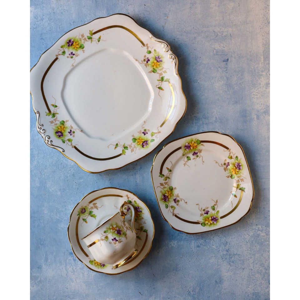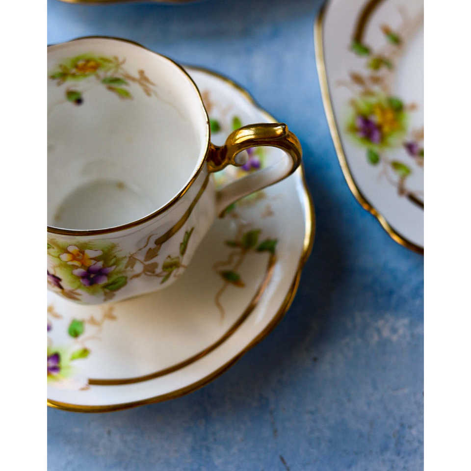 Taza de Té de Porcelana Inglesa Personalizable de 200 ml con Diseño Floral Clásico de Violetas para Té y Café, para Bebidas y Promociones