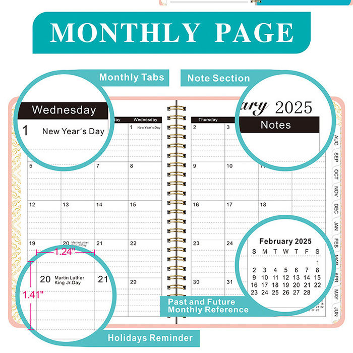 Personalizable 2025-2026 365 días A5 planificador viaje de trabajo organizador diario papel de tapa dura espiral escuela Oficina uso en caja promoción