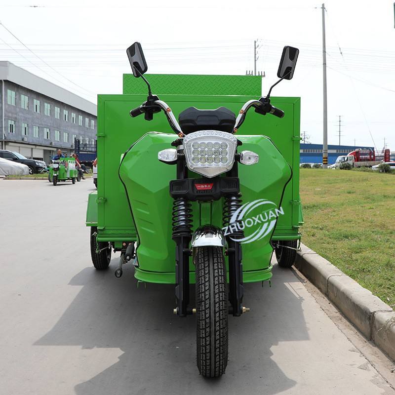 Triciclo Eléctrico de Carga Plana Personalizable con 4 Contenedores, Camión de Transferencia de Residuos para Zonas Residenciales