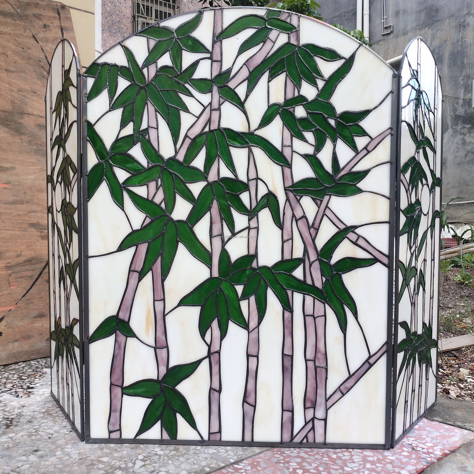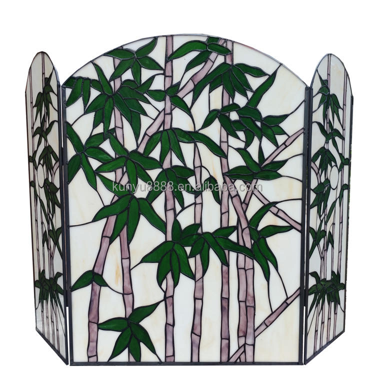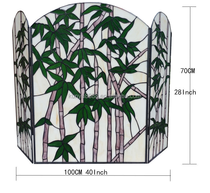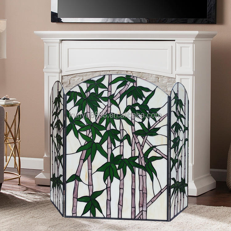 Mampara de Chimenea de Vidrio Tallado con Diseño de Bambú Estilo Europeo de 40''*28'', Personalizada, para Decoración de Sala de Estar o Recibidor