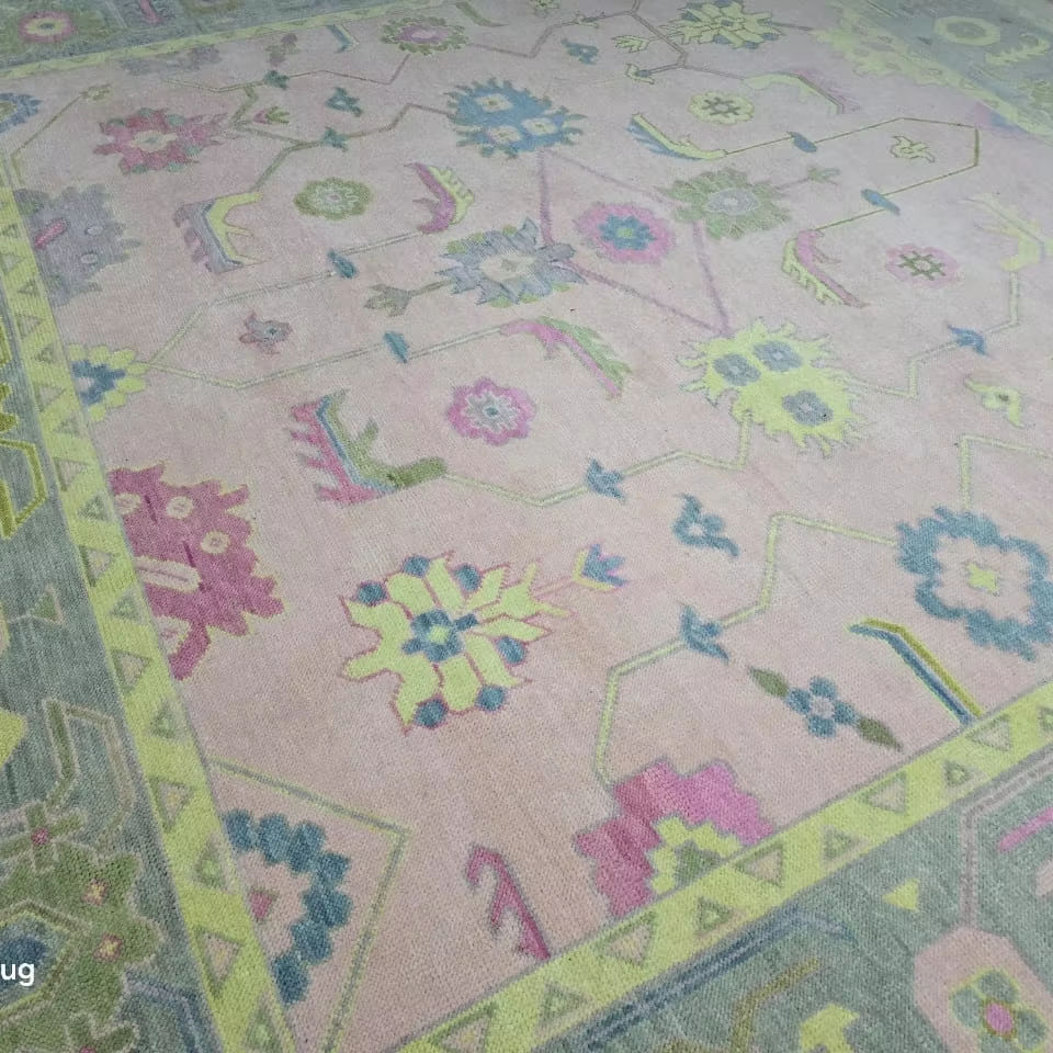 Alfombra Personalizable de Lana Desgastada de Estilo Oushak Abstracto de 5x8, Hecha a Mano, Antideslizante, de Pelo Corto, para Dormitorio, Sala de Estar, en Azul y Beige