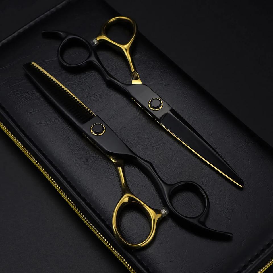 Kit de Tijeras de Peluquería Profesionales Personalizables de 6.0 Pulgadas, de Acero Inoxidable Negro y Dorado, Ecológicas y Ligeras