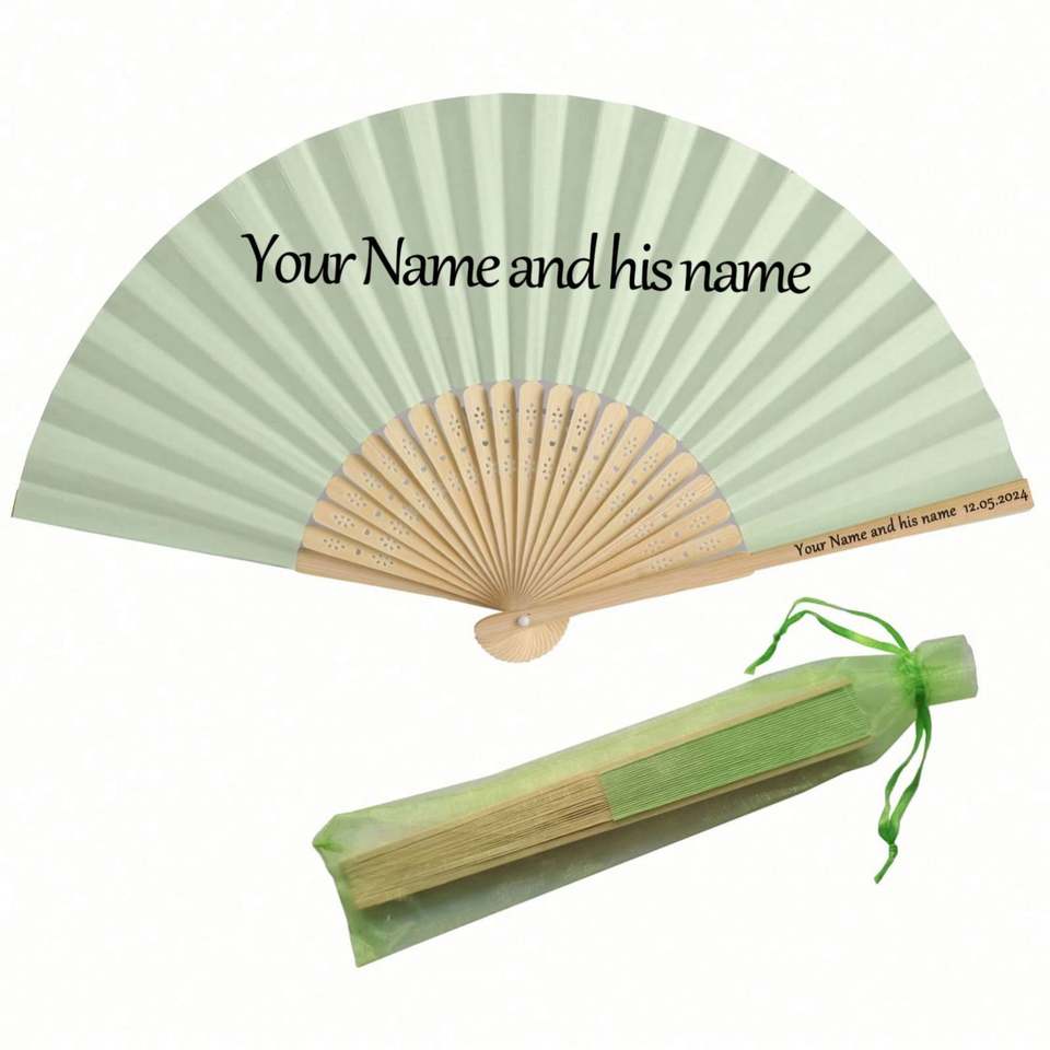 Abanico Plegable Personalizable de 7 Pulgadas, Abanico de Mano Portátil, Diseño de Arte Folclórico Pintado en Blanco, Material de Bambú, Técnica de Tallado, Regalos Empresariales