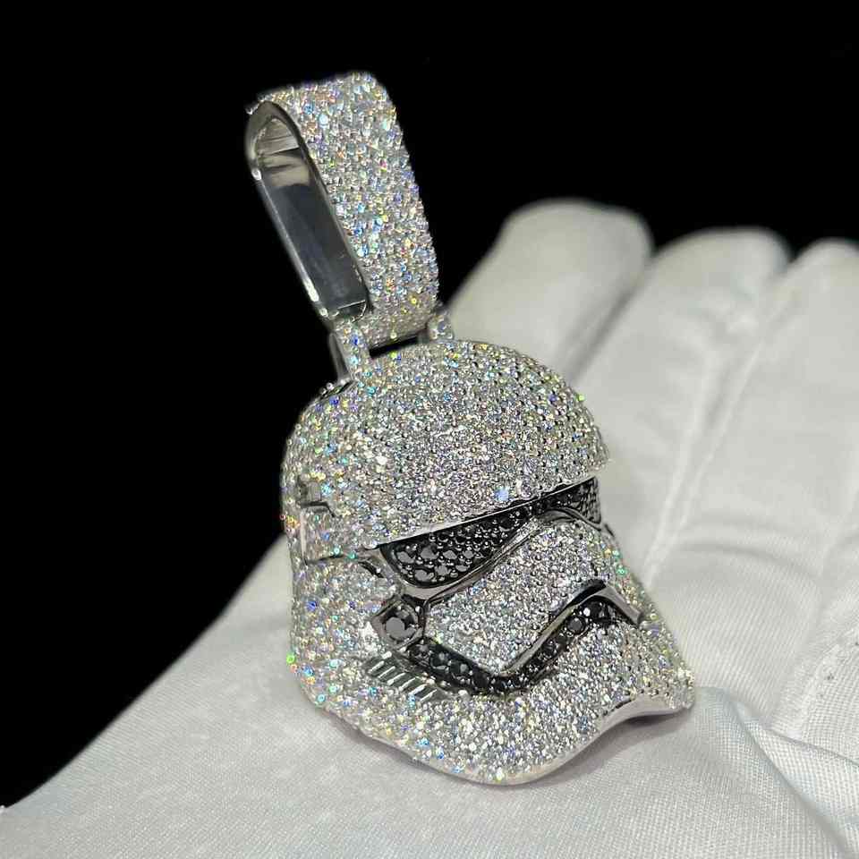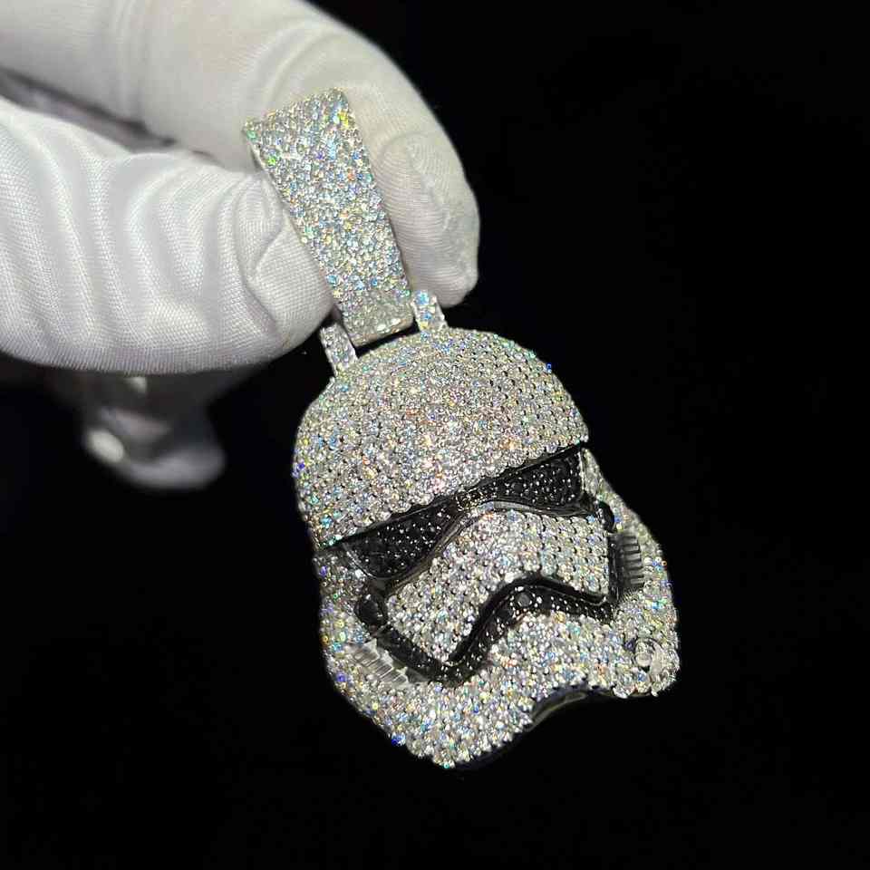 Colgante de Máscara Facial con Incrustaciones de Moissanita Estilo Hip Hop, Personalizable, Plata 925, Bañado en Rodio y Oro de 14K, Joyería Fina para Fiestas y Regalos