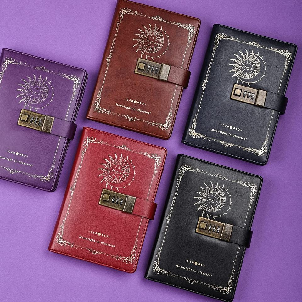 Diario de cuero con bloqueo de constelación A5 B6 personalizable, diario de escritura con sol y luna, forrado de papel, Vintage, combinaciones de contraseña, cuadernos