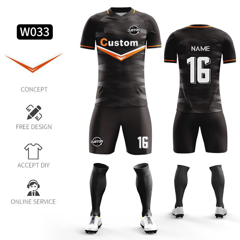 Conjunto de ropa de fútbol para adultos personalizable, Camiseta deportiva barata con impresión de logotipo de transferencia de calor gratis