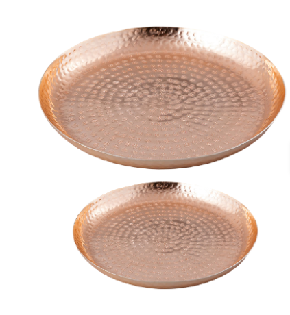 Bandeja de forma redonda de material de aluminio personalizable, bandeja redonda de metal fundido a mano con diseño martillado, bandeja para servir comida