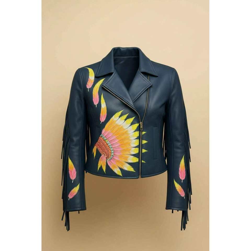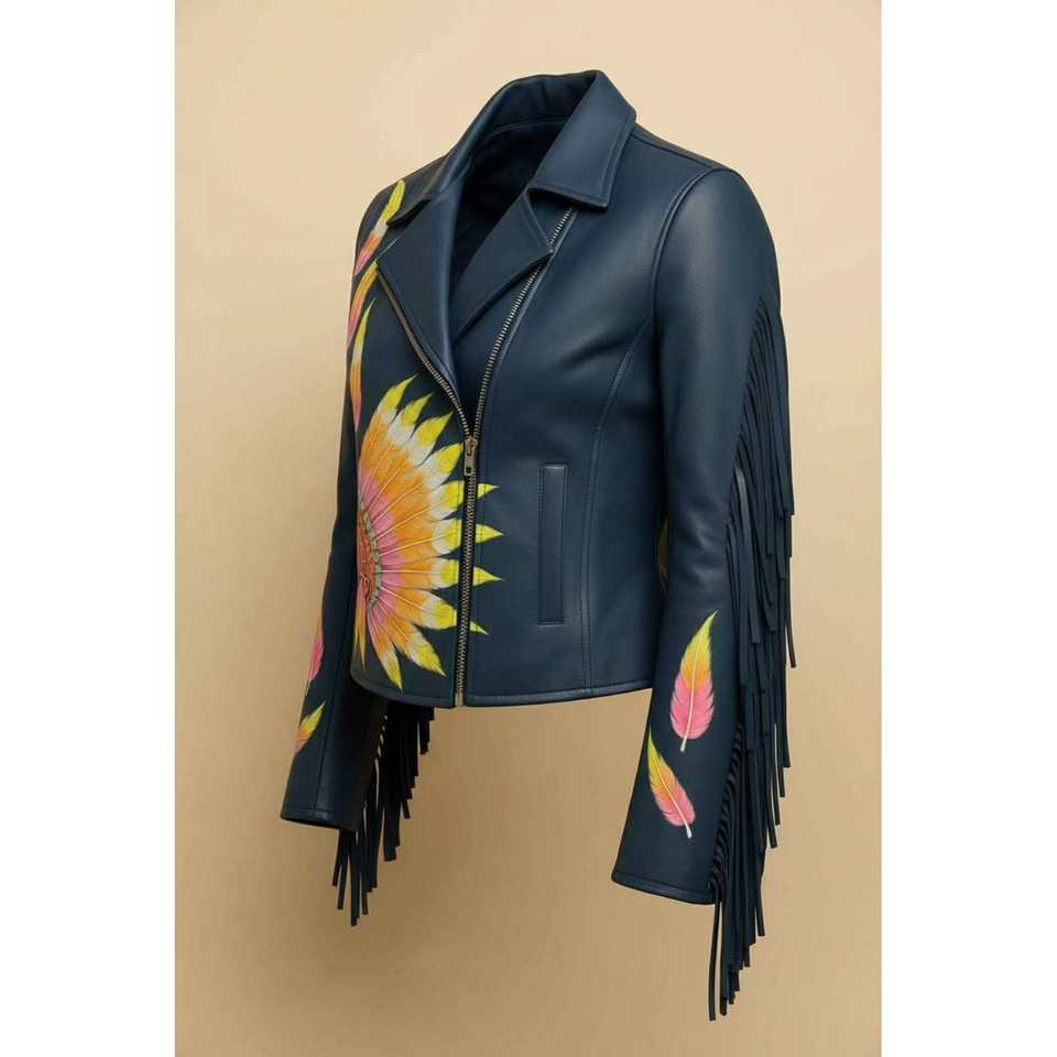 Chaqueta de Cuero para Mujer Pintada a Mano por Artesanos Personalizable