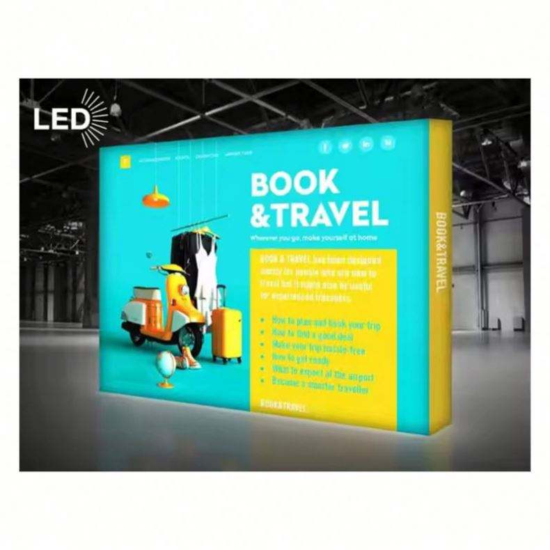 Expositor Publicitario Personalizable con Retroiluminación LED, Caja de Luz Portátil para Ferias Comerciales, Fondo de Stand de Aluminio y Tela Ecológica