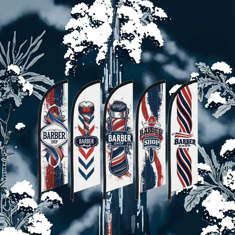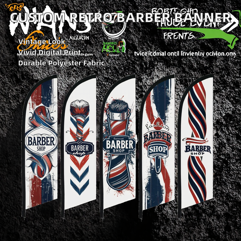 Bandera Publicitaria Personalizable Tipo Swooper para Playa, Decoración Exterior, Bandera de Peluquería, Estilo Retro, Ala de Pluma, Poliéster