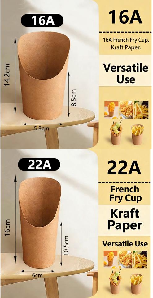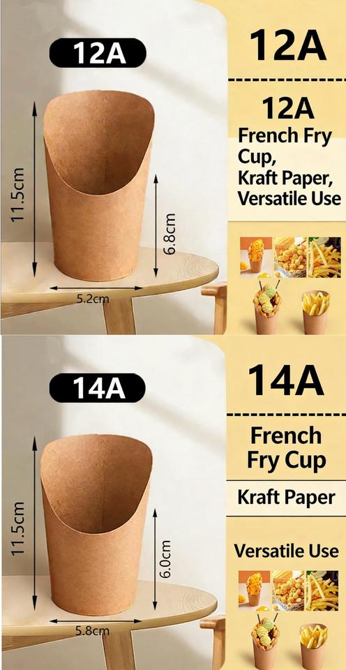 Vaso de Papel Kraft Biodegradable Personalizable para Papas Fritas, Vaso Multifuncional para Aperitivos de Comida Rápida