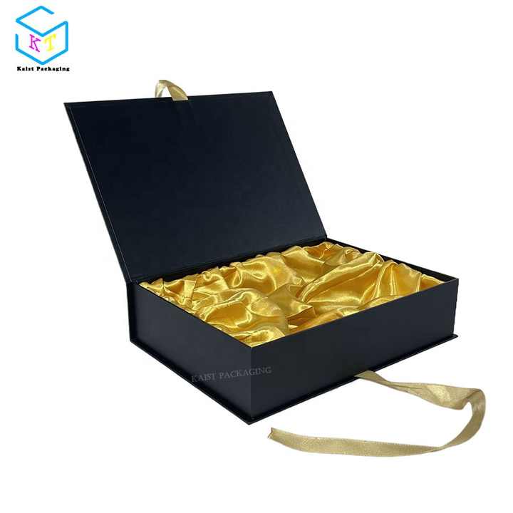 Customizable Black Book Open Box with Silk Satin Insert