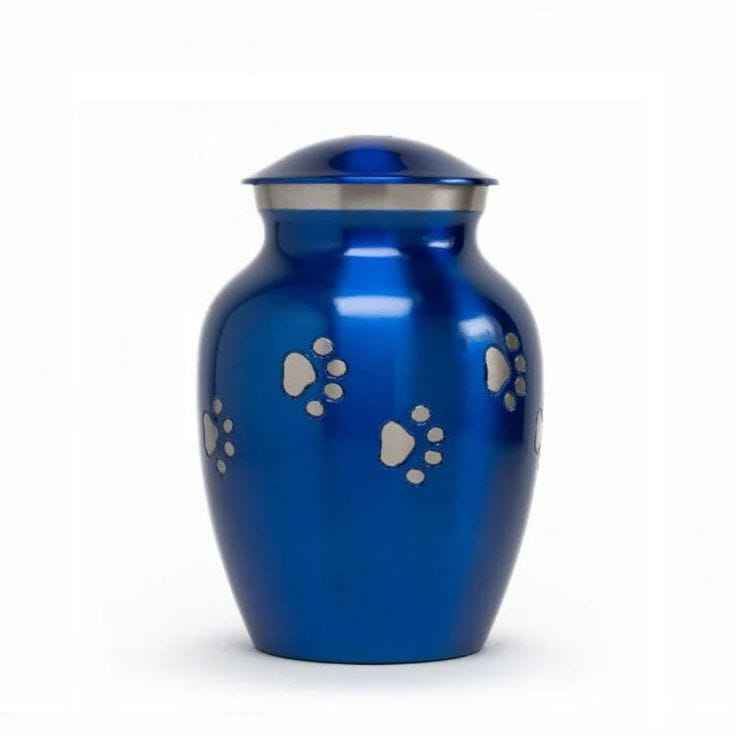 Urnas de cremación negras personalizables y tarro, banda con estampado de pata blanca, urna de Metal para mascotas para cenizas, urnas de cremación recién llegadas al por mayor