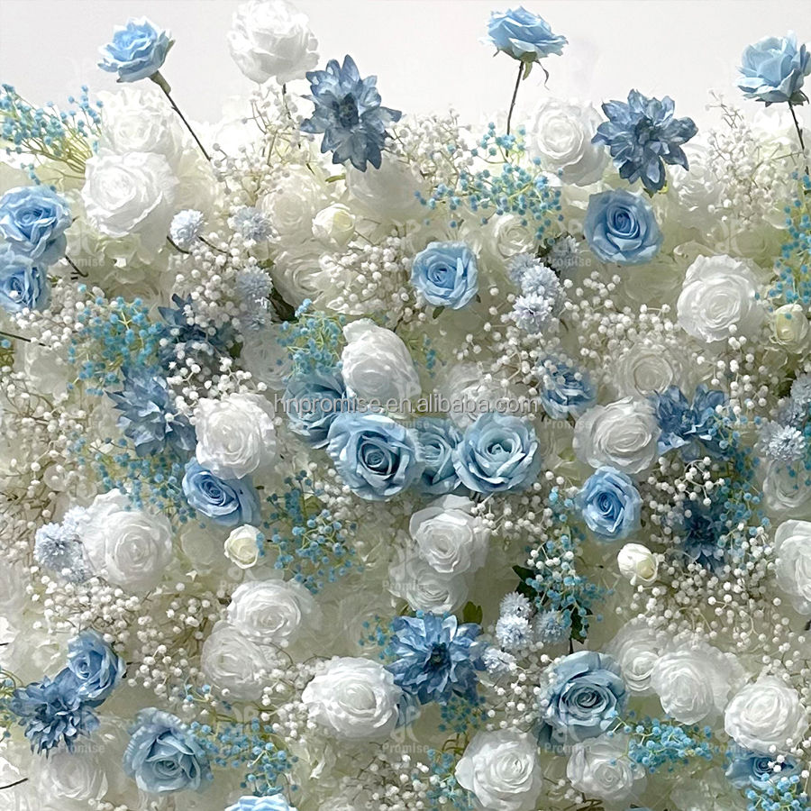 Rosas Artificiales Azules y Blancas Personalizables Combinadas con Paniculata para una Romántica Pared de Flores para Bodas