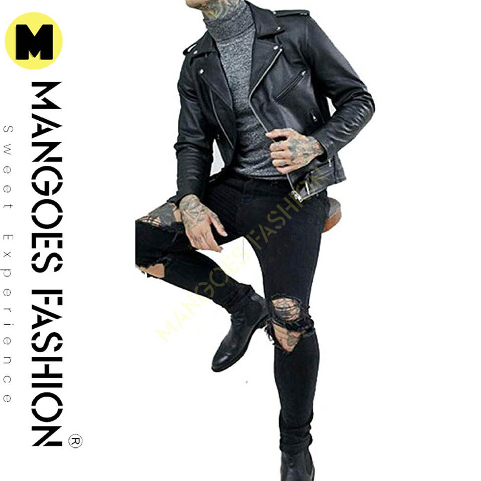 Chaqueta de Motociclista Personalizable de Alta Gama con Cuello Alto y Cierre de Cremallera - Prenda Exterior de Cuero Genuino para Hombre