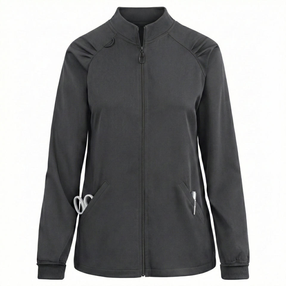 Chaqueta Médica Personalizable para Pedidos al por Mayor, Manga Larga, Cierre Frontal Completo, Uniforme de Enfermera con Presilla para Identificación, Chaqueta Médica Elegante para Mujer