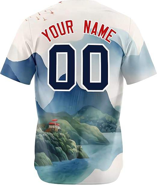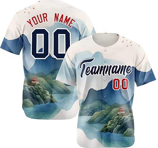 Camisetas de béisbol con botones personalizables para adultos Diseño único con montañas inspiradas en la naturaleza y característica transpirable de vegetación