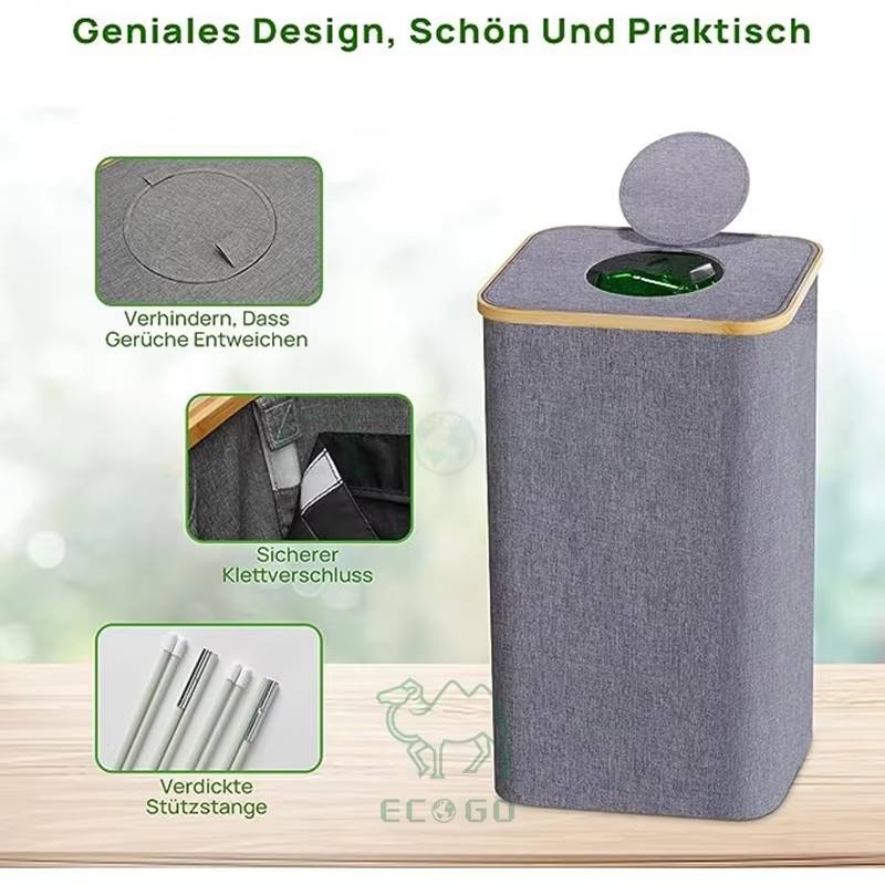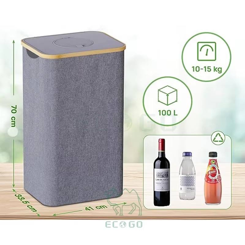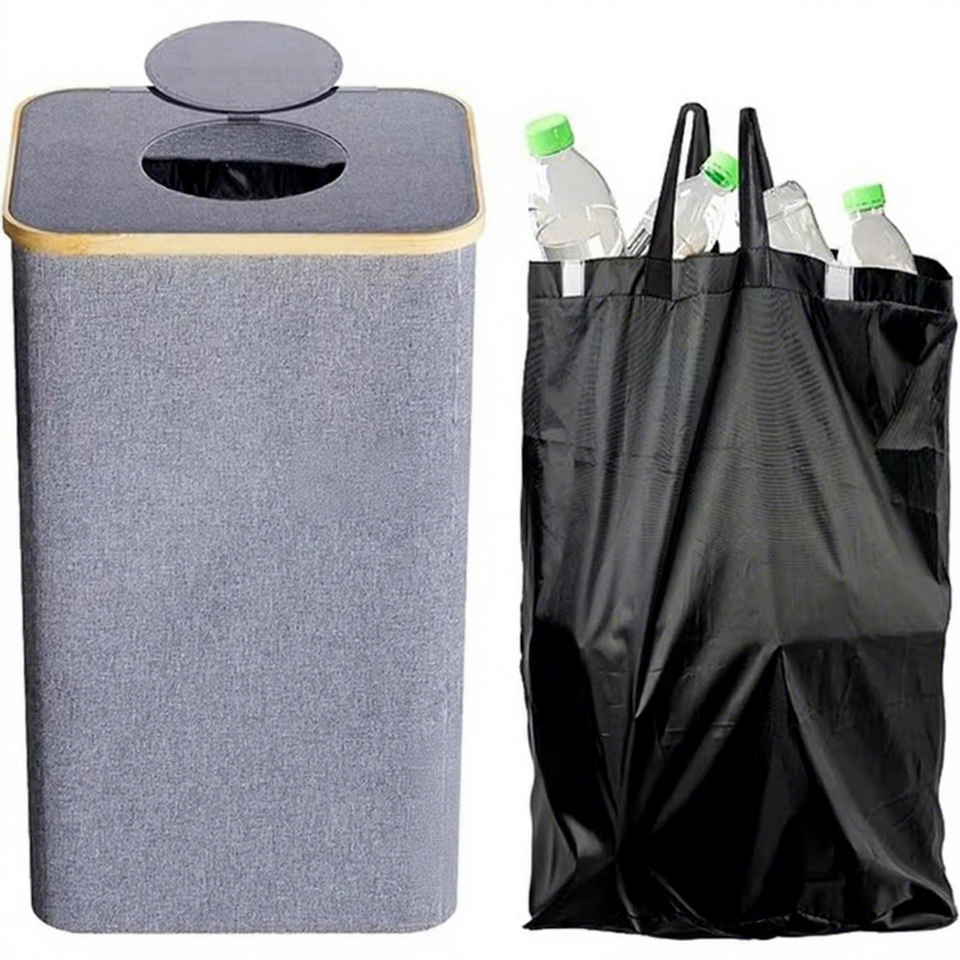 Contenedor de Recolección de Botellas Rectangular con Capacidad Personalizable, Diseño con Tapa Abatible, Bolsa de Transporte Integrada de Tela de Bambú