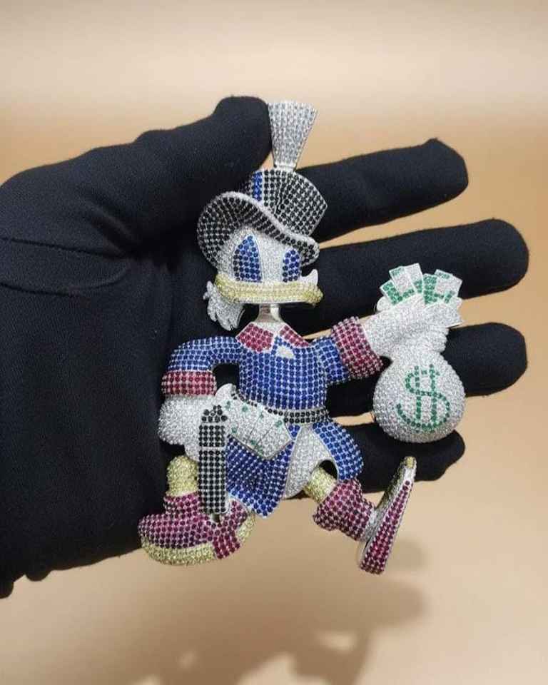 Colgante Personalizable de Dibujos Animados para Hombre, Totalmente Cubierto de Piedras, Personaje de Dibujos Animados, Estilo Hip Hop, Lujo, Moissanita, Bañado en Rodio, Colgante de Plata 925 para Rapper