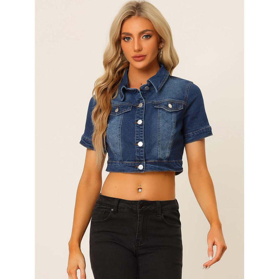 Chaqueta informal personalizable para mujer, chaqueta universitaria de manga corta, chaqueta vaquera corta transpirable