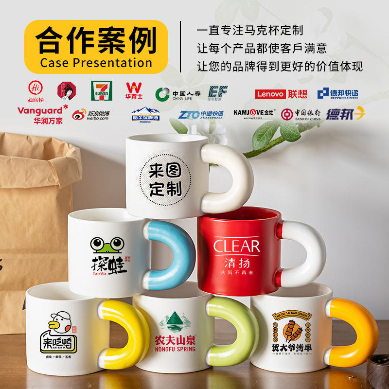 Taza de Cerámica Personalizable con Diseño de Dibujos Animados en Bloques de Color, Impresión Serigráfica, Regalo de Boda, Tazas para Parejas, Regalo Promocional