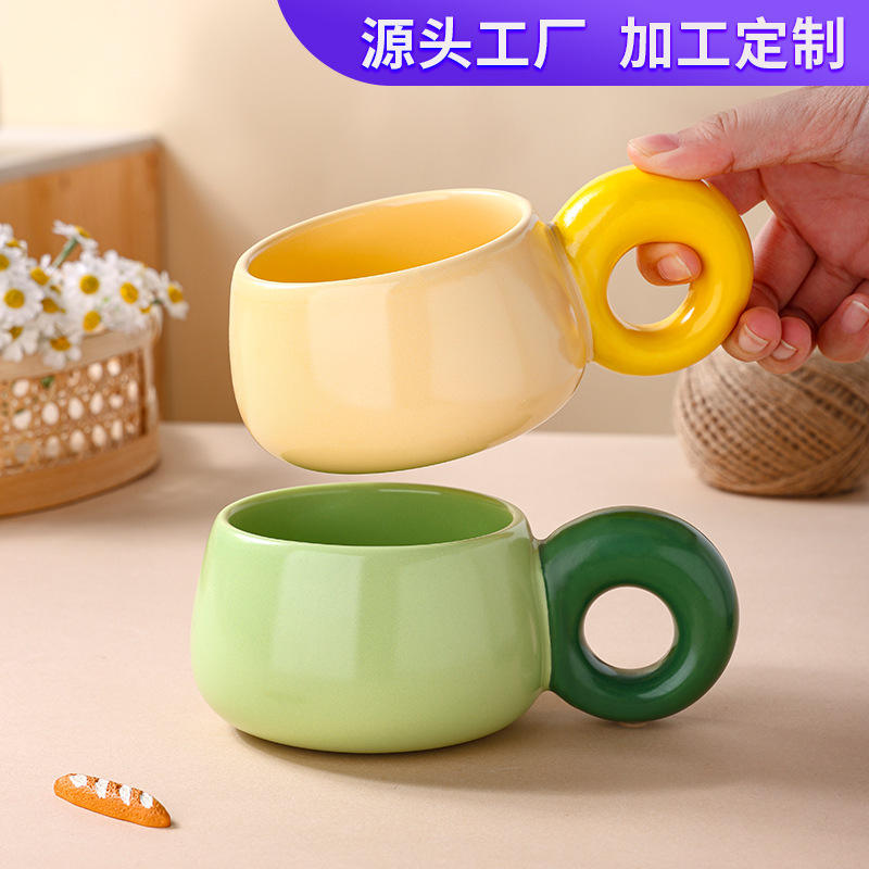 Taza de Cerámica Personalizable Amarillo Verde Diseño de Dibujos Animados Asa Grande para Café Leche Regalo Taza Individual