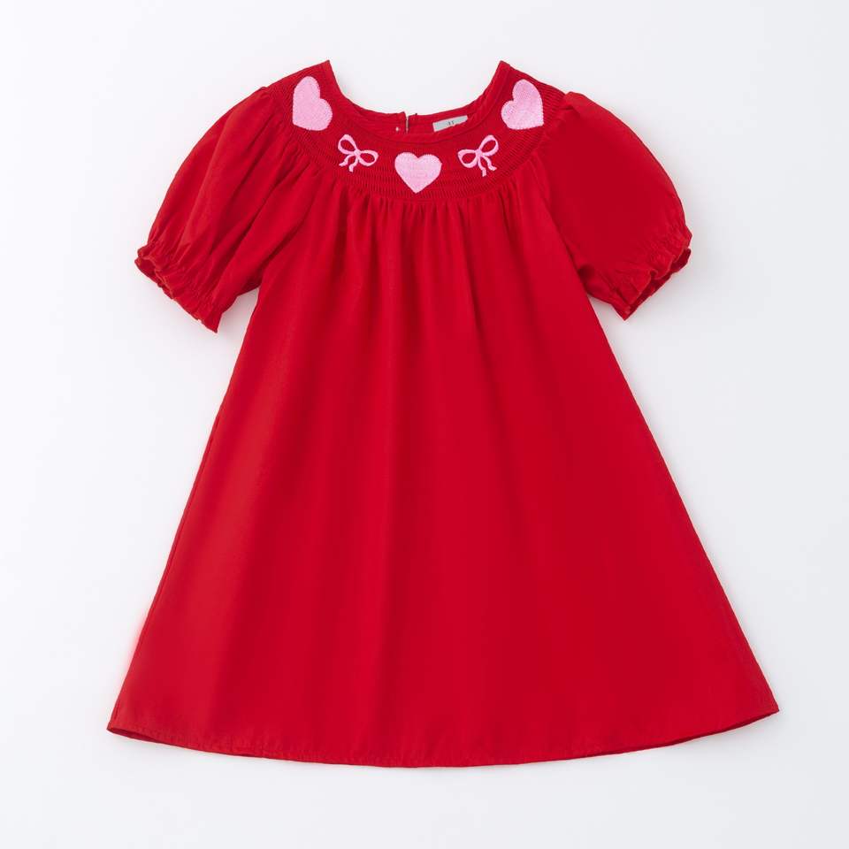 Vestido de algodón rojo sólido personalizable para niños, bordado de lazo de corazón ahumado, mameluco informal para niñas y hermanos