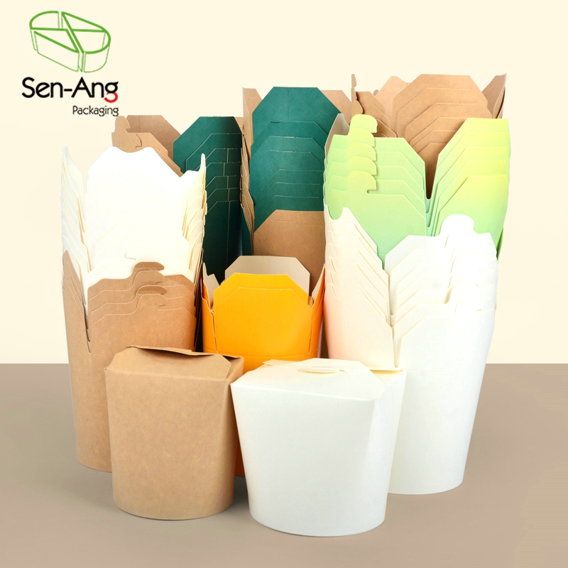 Cajas de embalaje personalizables de comida china para llevar, cartón Kraft, formas rectangulares redondas para el almuerzo, caja de embalaje de fideos de arroz