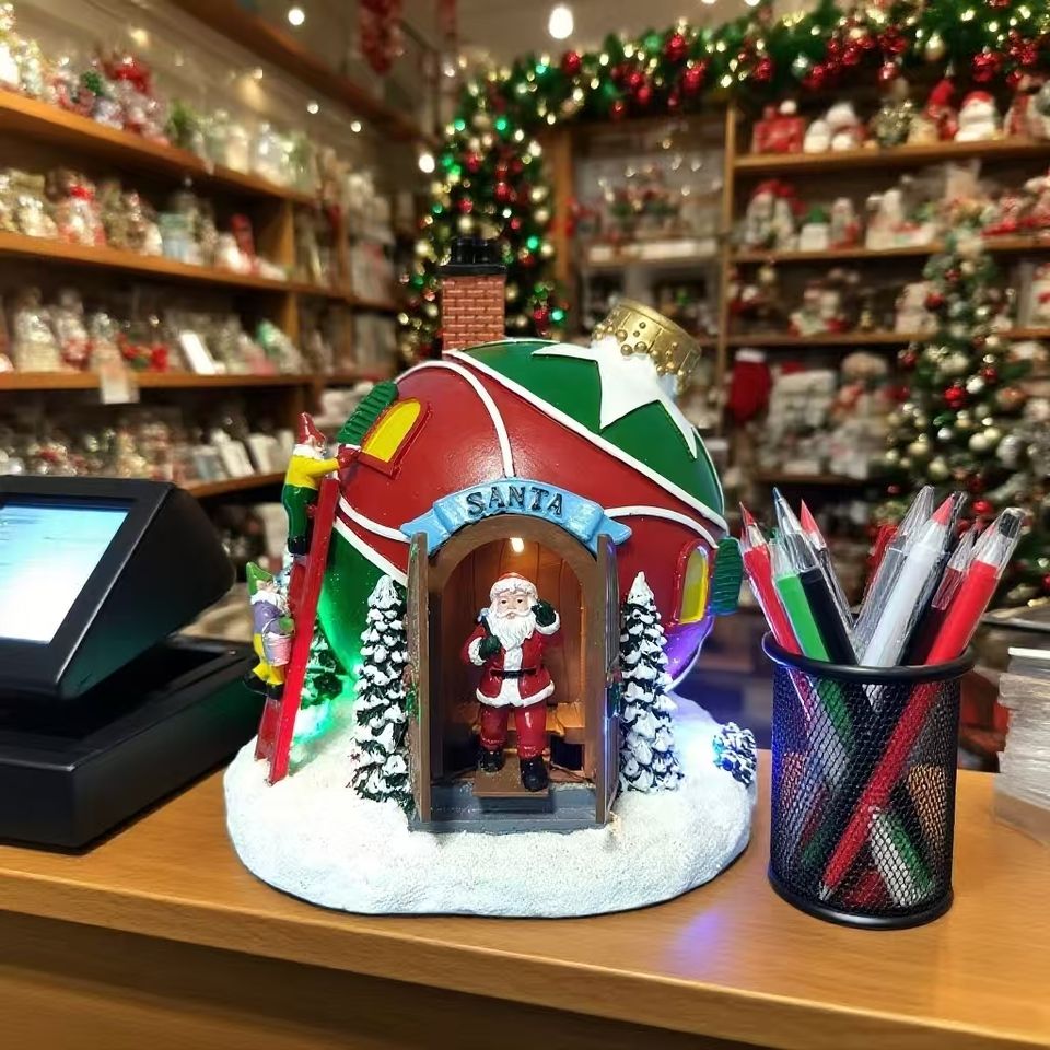 Adorno de resina de Casa de elfo LED de color personalizable, decoración de mesa hecha a mano para vacaciones de Navidad, suministro de regalo de calidad