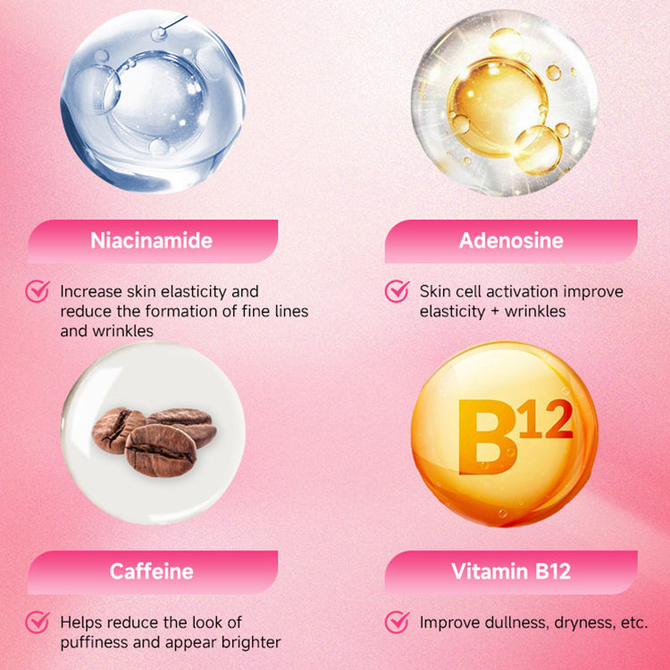 Niacinamida, Cafeína, Colágeno, Adenosina, Vitamina B12