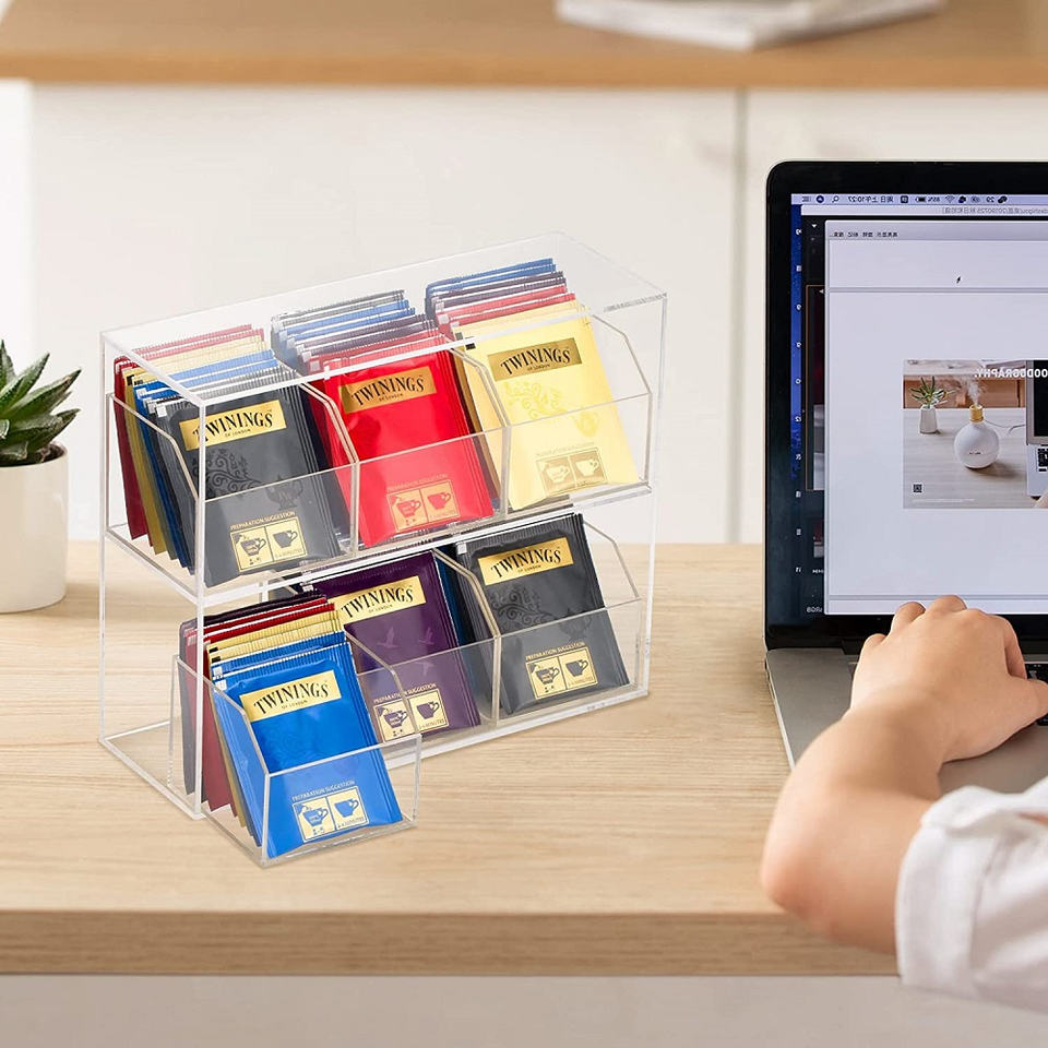 Dispensador/Soporte/Organizador de Bolsitas de Té de Acrílico con Color y Forma Personalizables