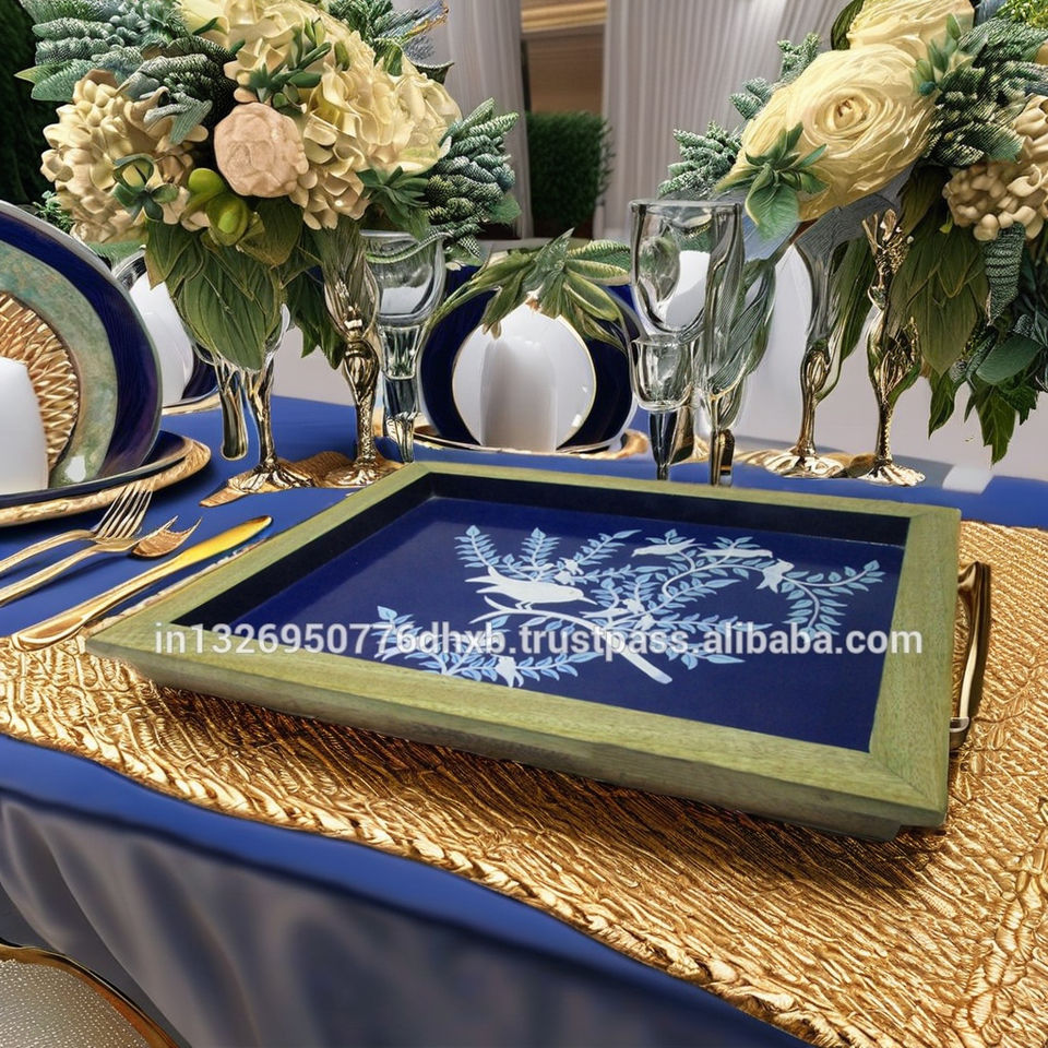 Bandeja rectangular de madera pintada a mano esmaltado coloreadoNombre del producto