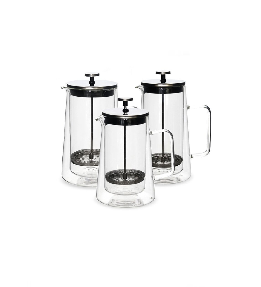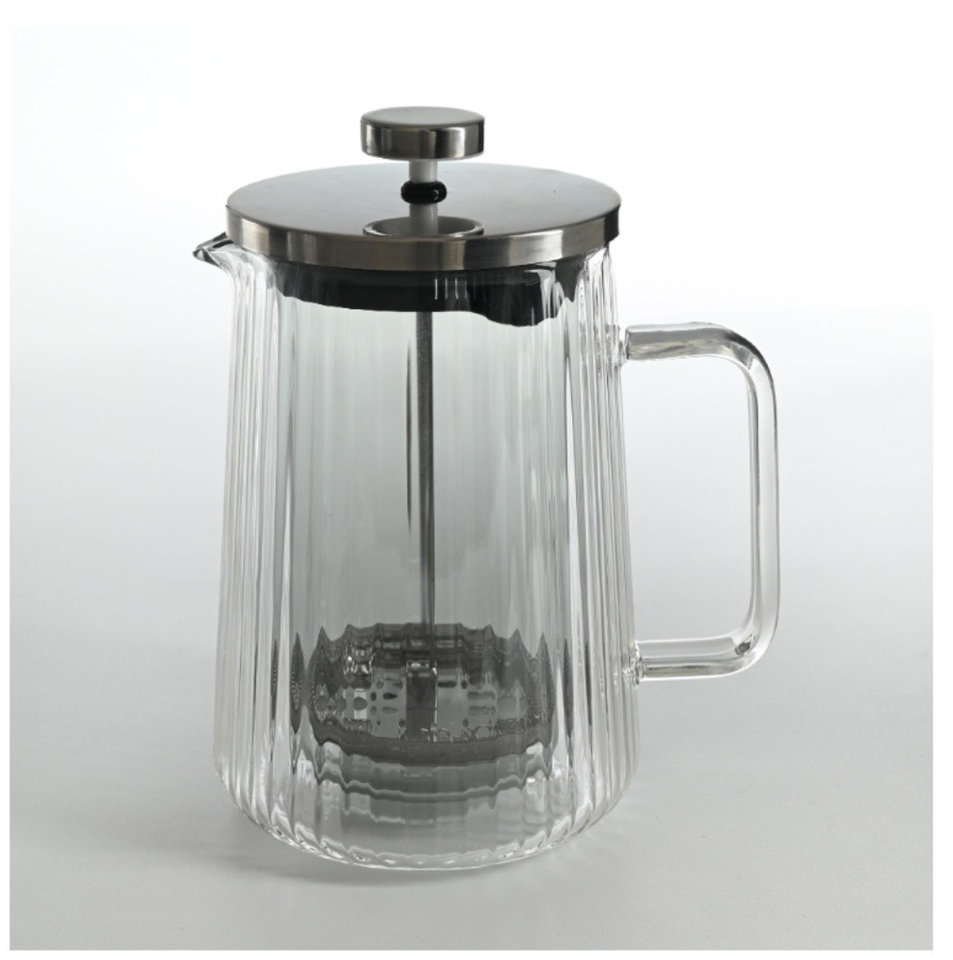 Cafetera de vidrio de borosilicato de doble pared de colores personalizable, elaboración casera clásica, patrones artísticos verticales, función de espuma de leche