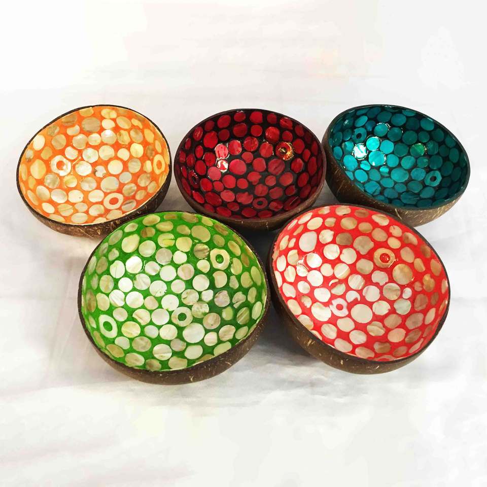 Cuencos Decorativos Hechos a Mano con Cáscara de Coco Lacada, Estilo Moderno, Colores Personalizables, Hechos en Vietnam