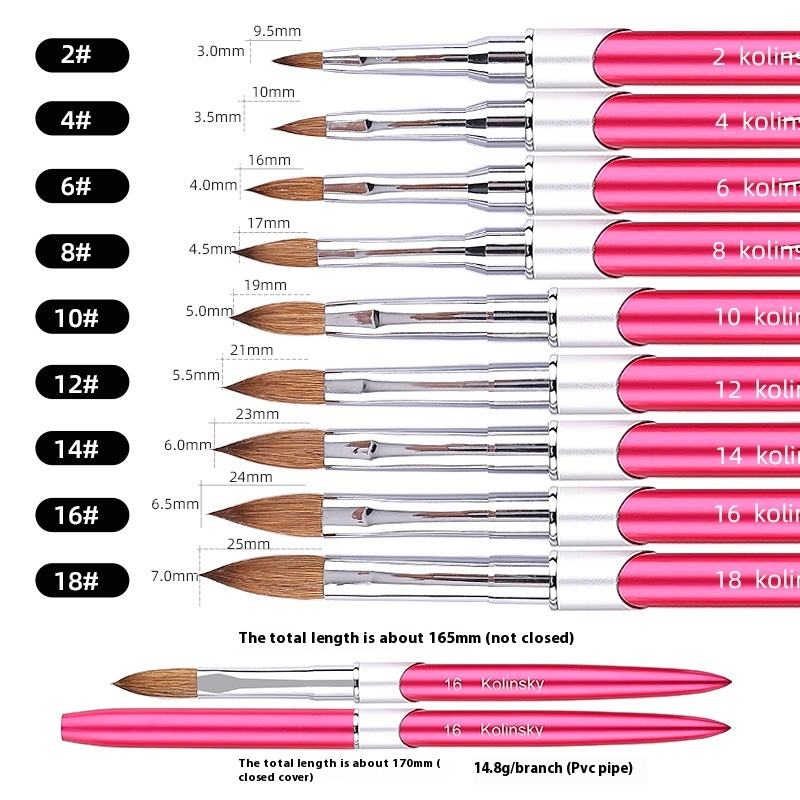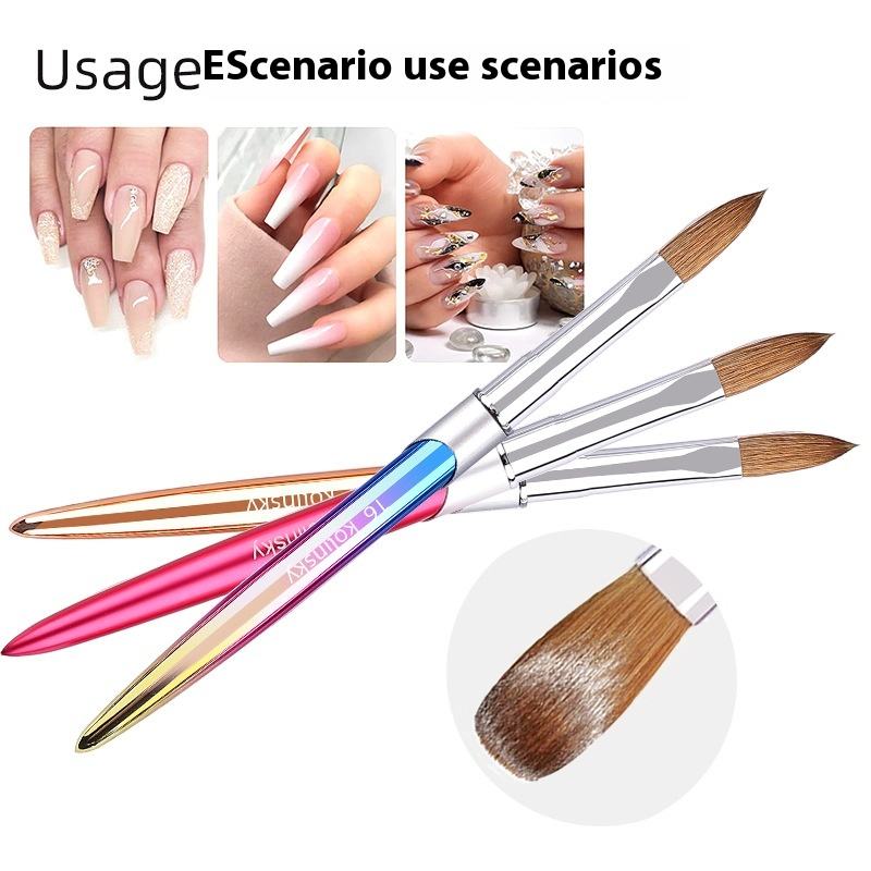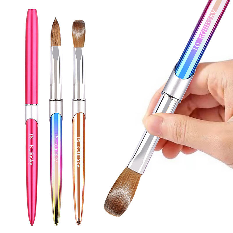 Personalizable Cross-Border para Amazon Nail Art Brush Flat Hair Shape Metal Pen con Mink Crystal Siberian Kolinsky Pelo Sintético