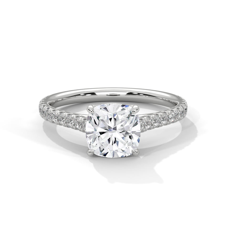 Anillo de Compromiso Personalizable con Diamante Cultivado en Laboratorio, Corte Cojín, Oro Blanco de 14K, EF VVS, Certificado IGI, Joyería Nupcial de Lujo con Acento Redondo