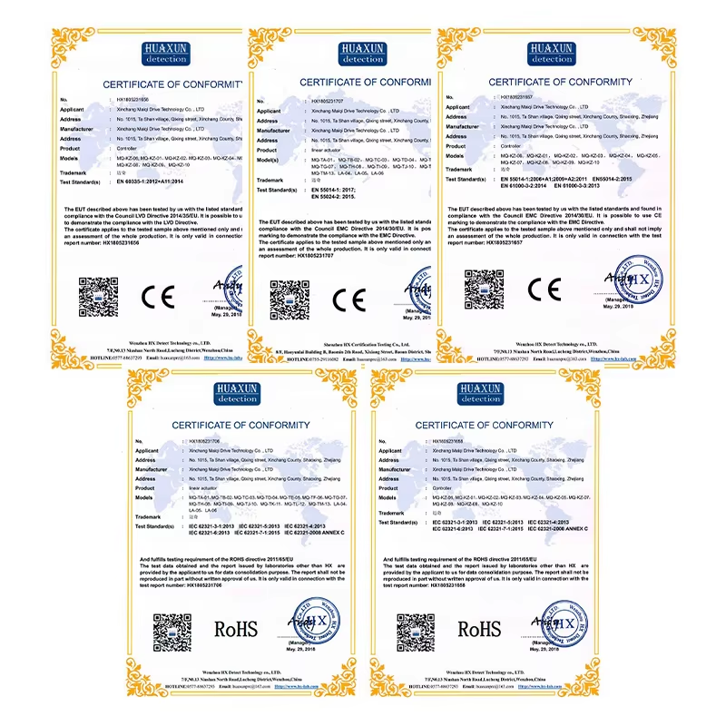 Actuador lineal de 24V CC personalizable con nivel impermeable IP66 Uso en exteriores Cabezal de tracción Prueba escrita Construcción de imán permanente