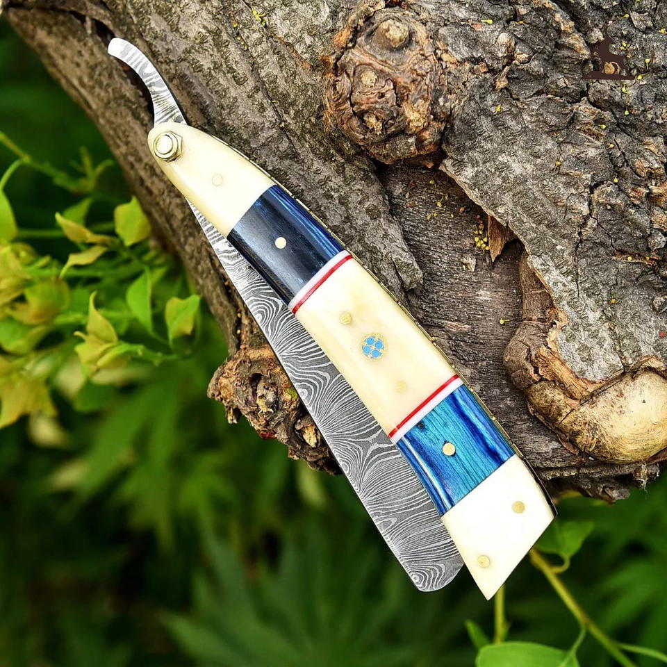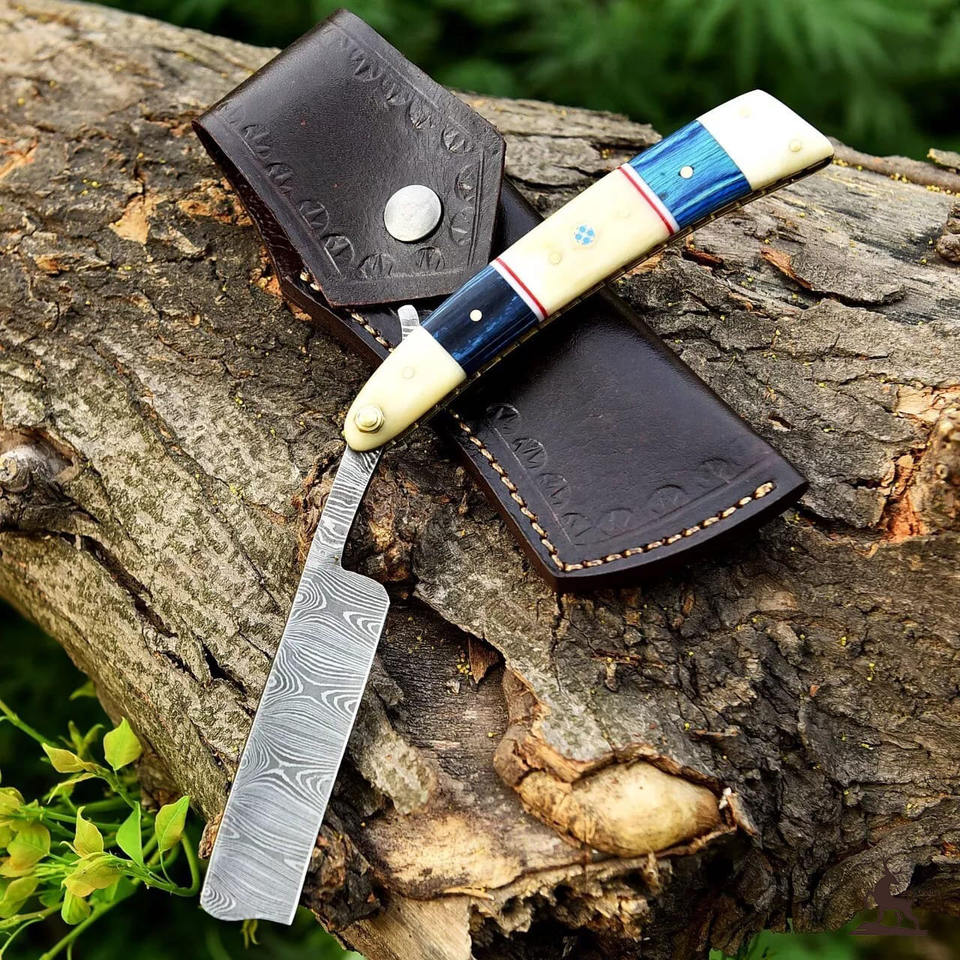 Maquinilla de afeitar recta de acero de Damasco personalizable, herramienta de barbería de afeitado de garganta con cómodo mango de cuerno OEM