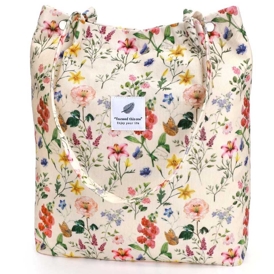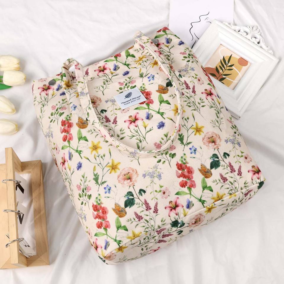 Bolsa de Lona con Diseño Personalizable y Estampado Floral Vintage, Bolsa de Lona Resistente, Reutilizable y de Gran Capacidad para Vacaciones en la Playa