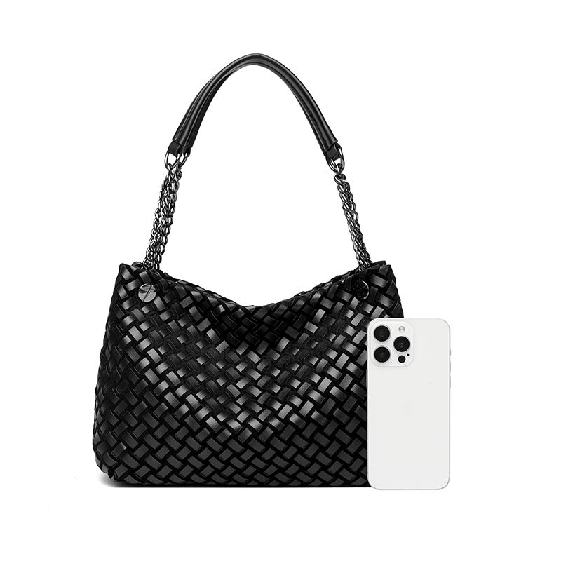 Bolso de Mano Personalizable de Diseño con Patrón Tejido, Bolsos de Hombro de Cuero PU para Mujer, Bolsos Modernos