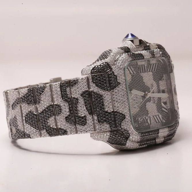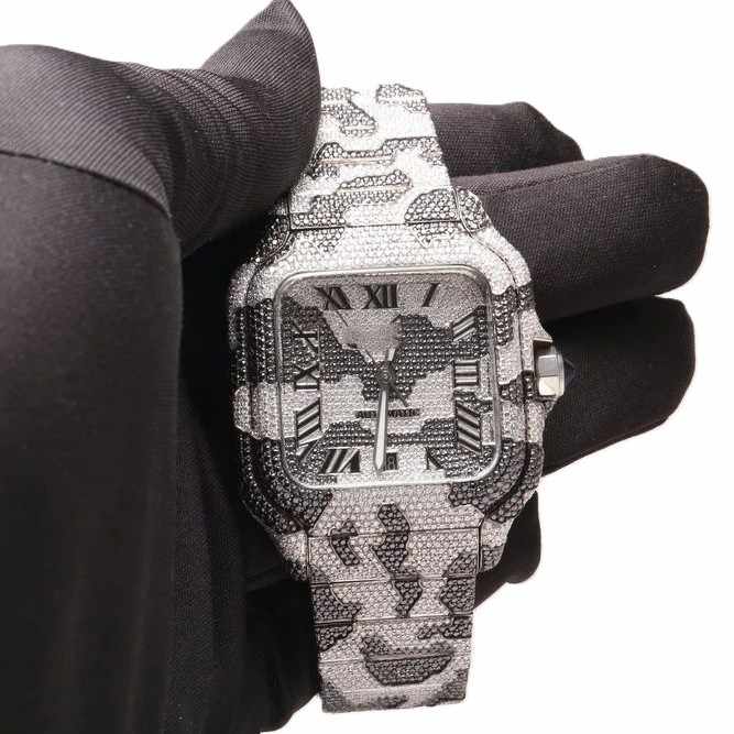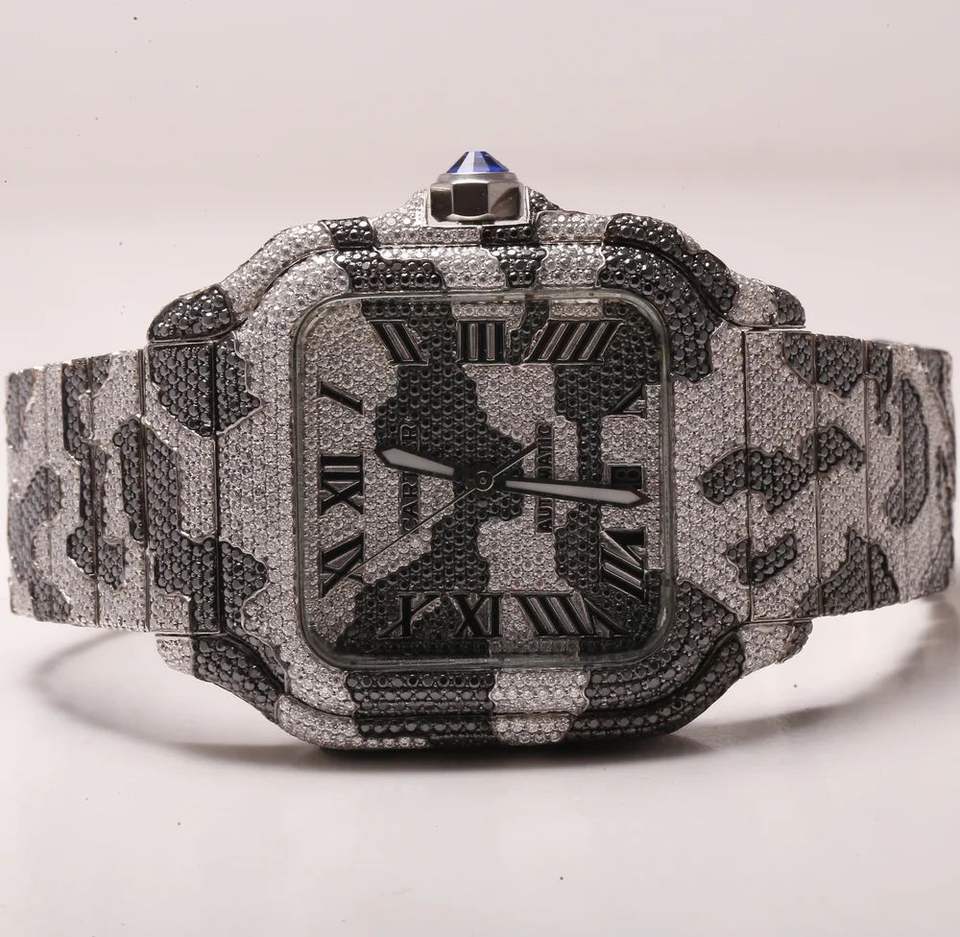 Personalizable Diamante VVS Moissanite ETA Reloj Automático Caja de Acero Inoxidable con Cristal Fase Lunar para Hombres