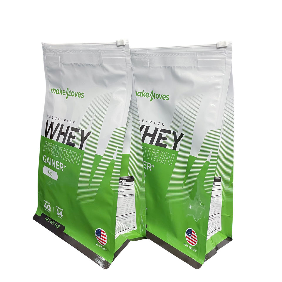 Paquete de comida resellable con impresión digital personalizable Bolsa de polvo de proteína de leche brillante Bolsa de fondo plano