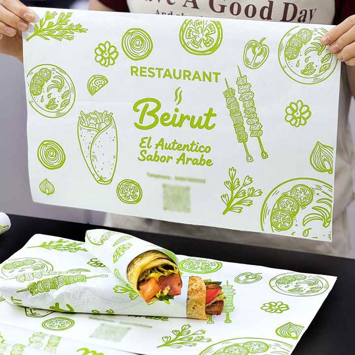 Papel de Envolver Personalizable, Desechable, Ecológico, Recubierto de PE, Antigrasa, para Sándwiches de Pollo, Hamburguesas y Panecillos
