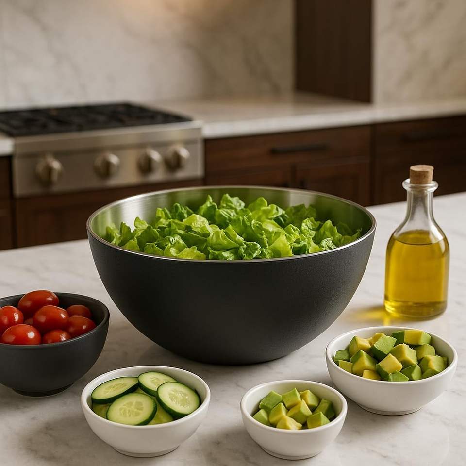 Tazón para servir de ensalada apilable de gran capacidad desechable personalizable, acero inoxidable negro, apto para lavavajillas, fiestas